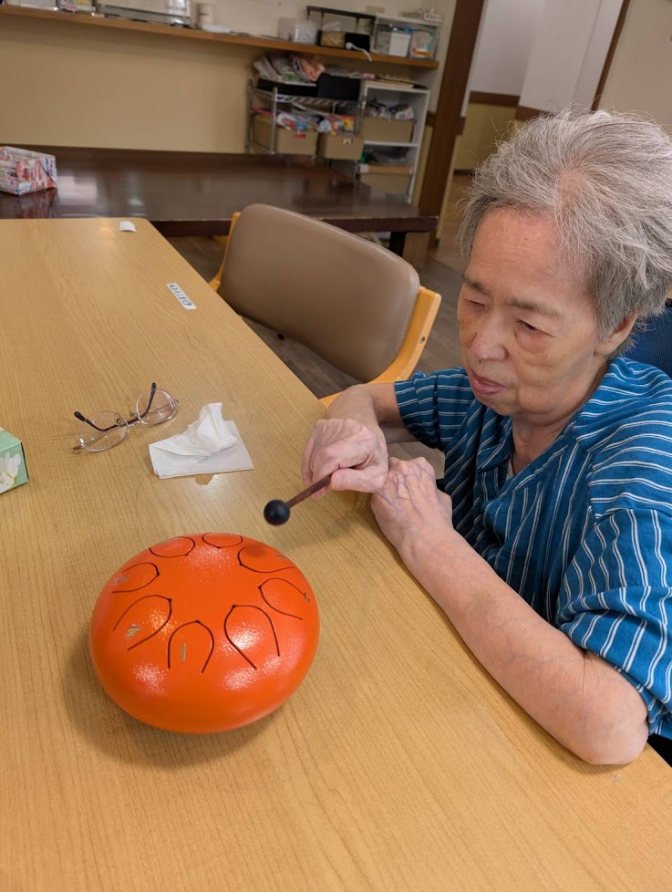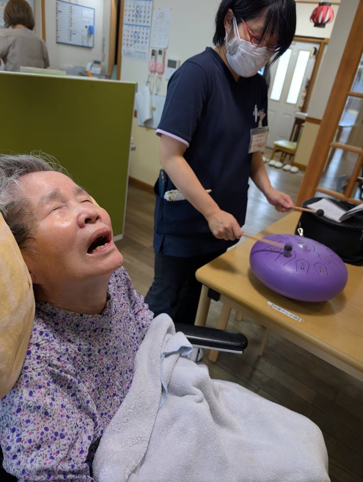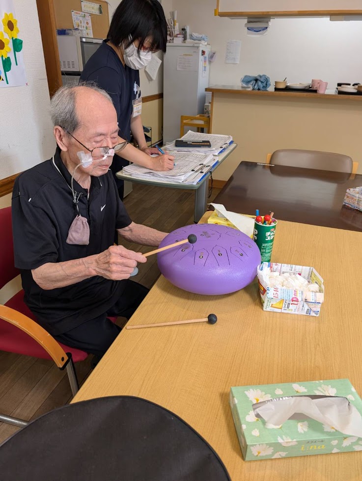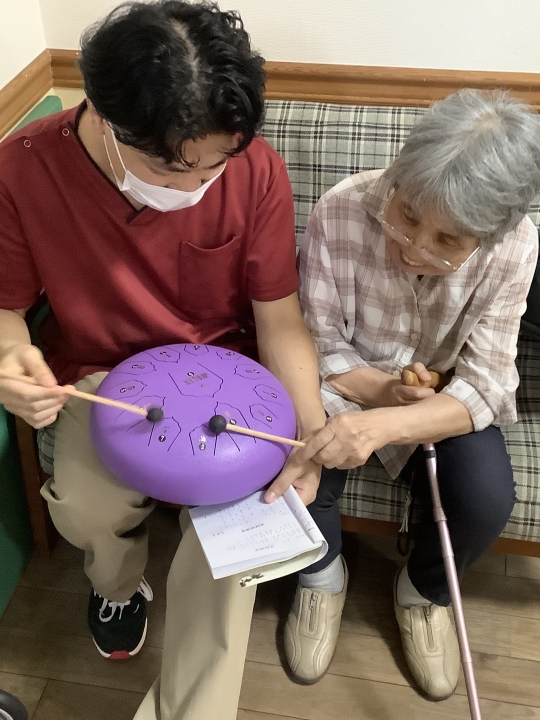 タングドラムを奏でると、何ともリラックスした表情になられます。