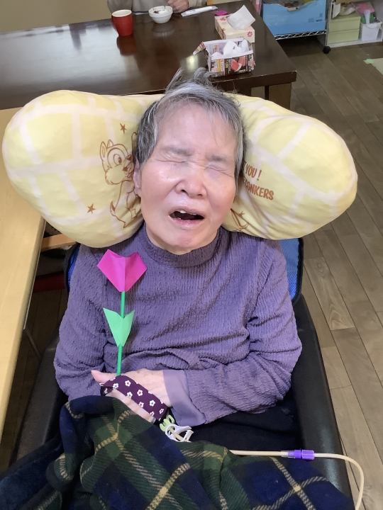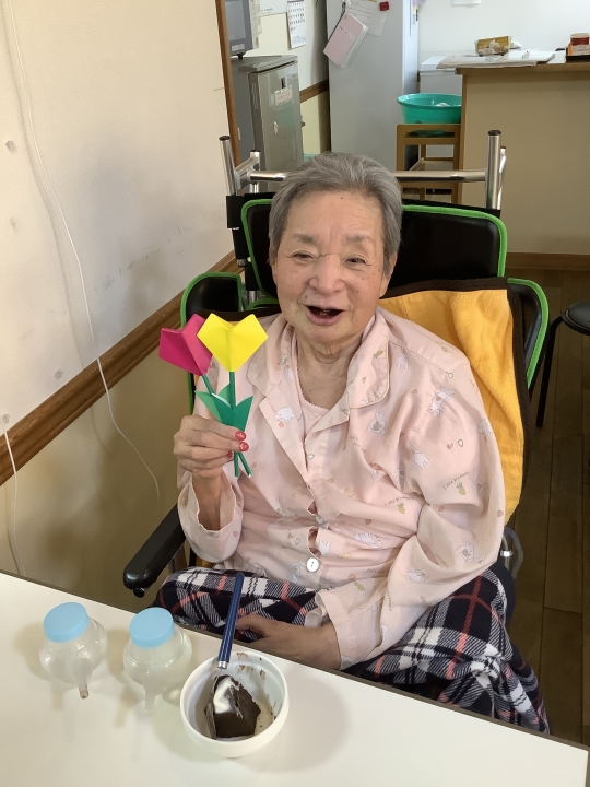 利用者様、お一人お一人に、愛と感謝を込めてチューリップをお渡しします。