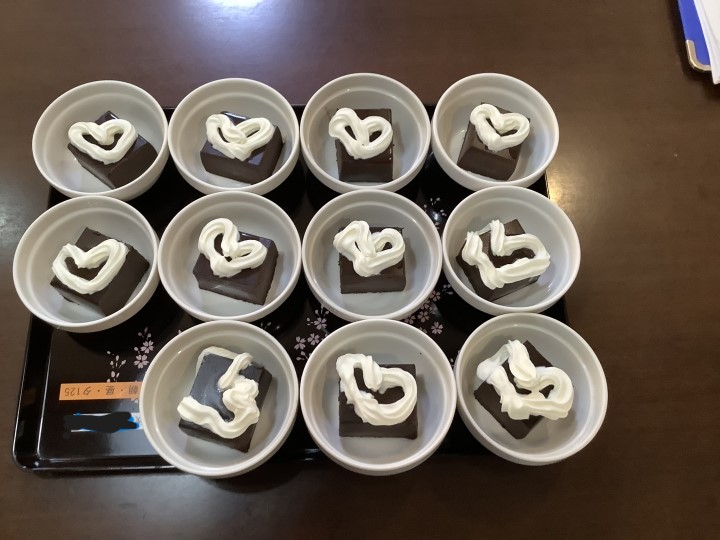 チョコレートケーキで、バレンタインのイベントを楽しむ愛恩ガーデンハウス極楽です。