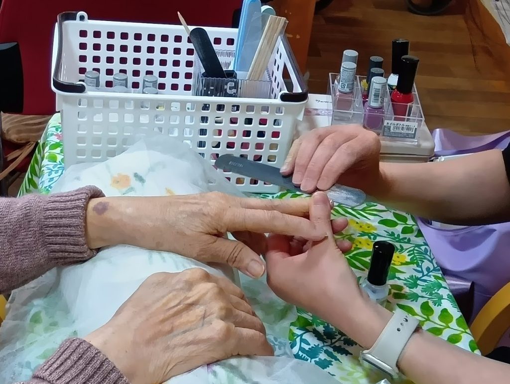 女性利用者様、皆様に ネイル もしくは メイク のいずれかを選んでいただきました。