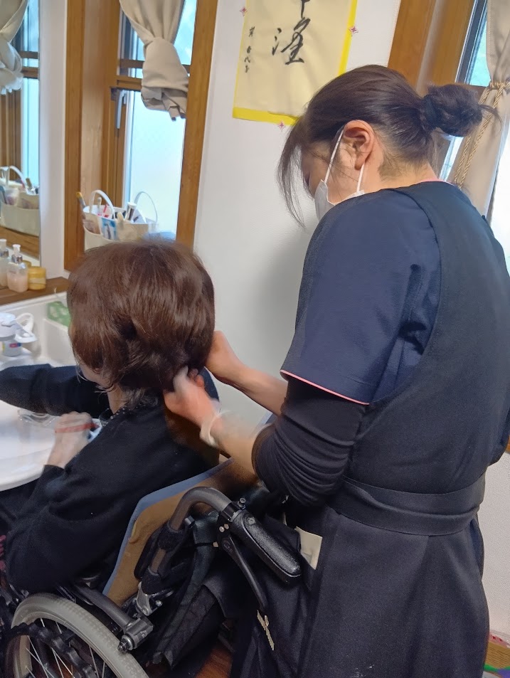 愛恩訪問看護ステーションには昨年、介護美容を学ばれる看護師が2名、入職しました。その名も、、