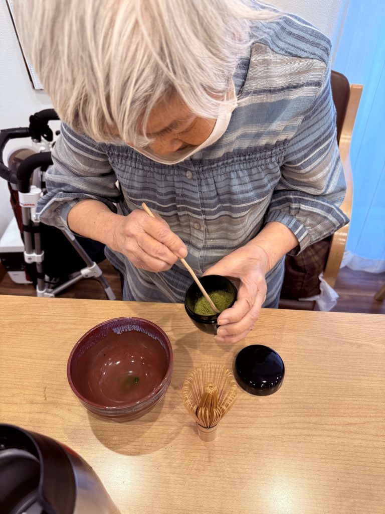 「せっかくならお抹茶つくろうか🍵」と茶道をされていた方が皆さんにお抹茶をご用意してくださいました、、